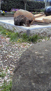 近くの小さな公園で猫三匹と遭遇。いや、もっといたか。餌を食べるにも上下関係があるらしい。独占してもりもりやってた猫は、食べ過ぎてその場でゲロしてた。