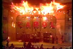 いきなり日比谷野音のステージが燃えてる。どういう経緯か知らないが、マジの火事になってるオープニング映像に大笑い。