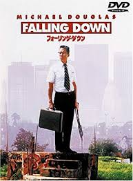 『フォーリング・ダウン』(93)のアートワークをご覧になって頂きたい。白シャツの会社員姿のマイケル・ダグラスが両手にそれぞれスーツケースとマシンガンを持っている。